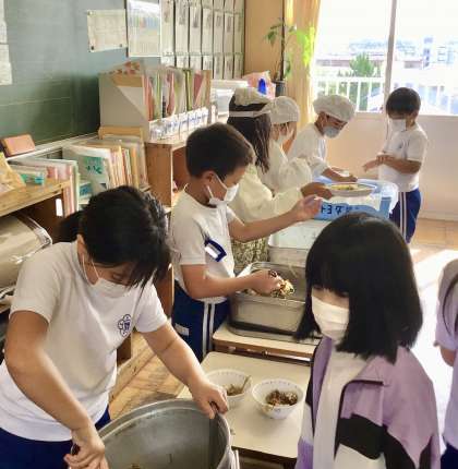 10月16日(水)の梅坪小(4)2年生の給食風景