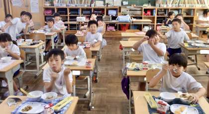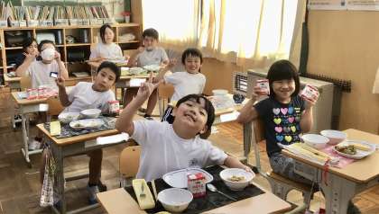 10月16日(水)の梅坪小(5)2年生の給食風景