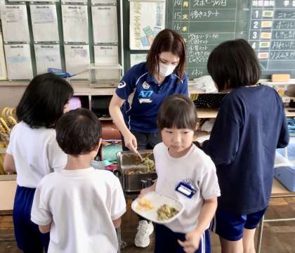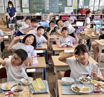 10月16日(水)の梅坪小(7)2年生の給食風景