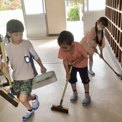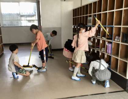 毎週水曜日は、掃除のない日…のはずが、1年の昇降口では、2組の子どもたちが自主的に清掃していました!
