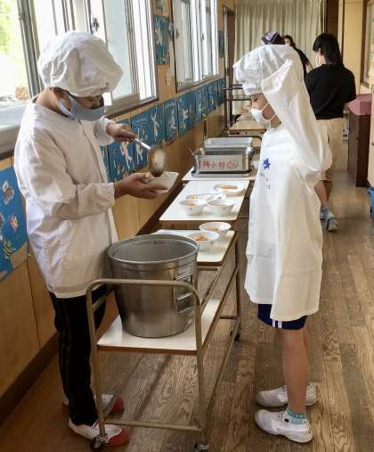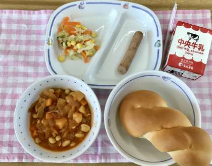 10月17日(木)の梅坪小(8)ツイストパンにポークビーンズ