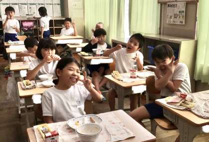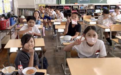 10月17日(木)の梅坪小(10)3年生の給食風景