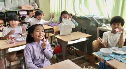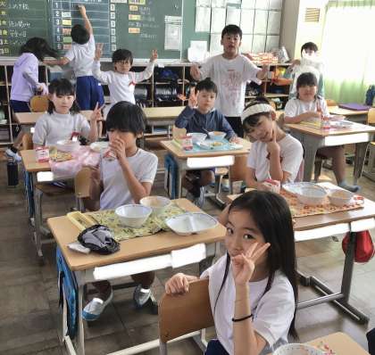 10月17日(木)の梅坪小(12)3年生の給食風景