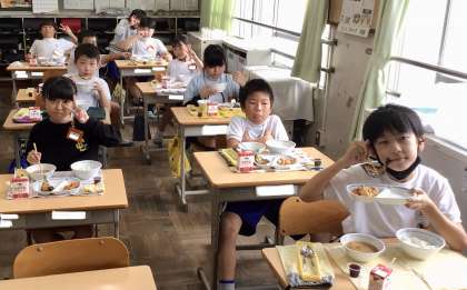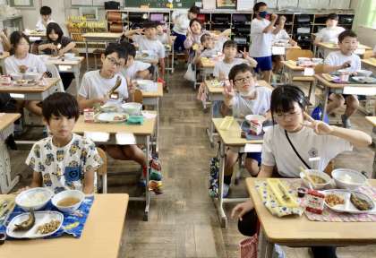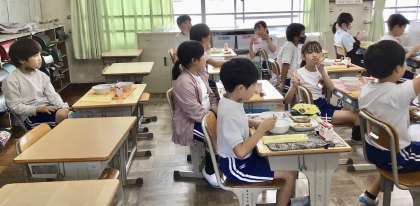 10月18日(金)の梅坪小(6)4年生の給食風景