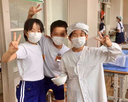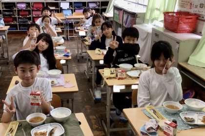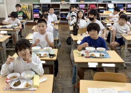 10月18日(金)の梅坪小(8)4年生の給食風景