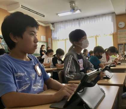 一人一台のタブレット端末、ICT環境の充実も上記の新たな教育を後押ししています。