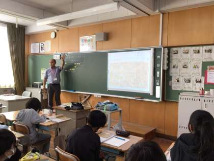 戦国時代の絵画資料を黒板に投影し、気づきの出し合いから時代背景を探っていきました!