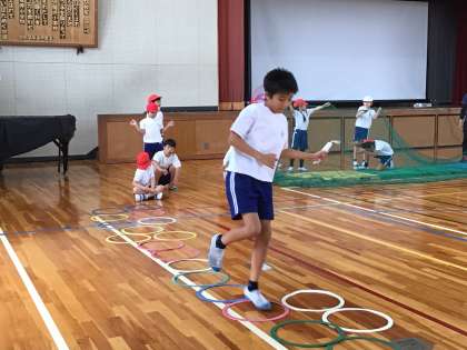 たくさんの保護者の方々が見てくださるなかで、張り切って身体を動かす様子がありました。
