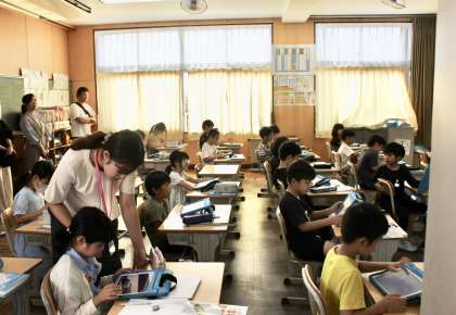 一人一台のタブレット端末、ICT環境の充実も上記の新たな教育を後押ししています。
