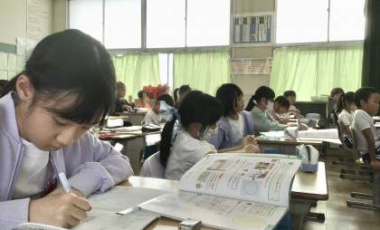 一生懸命にノートをとる子もいて、円の性質の基礎基本を定着させている様子がうかがわれました。