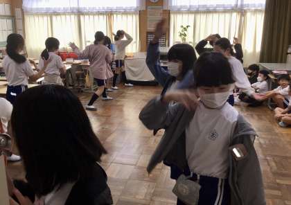 10月23日(水)の梅坪小(4)ソーラン節 特訓中 6年生