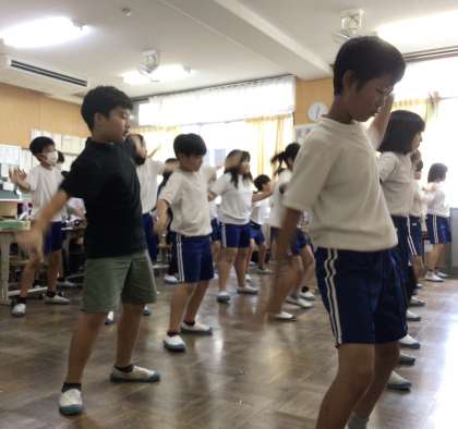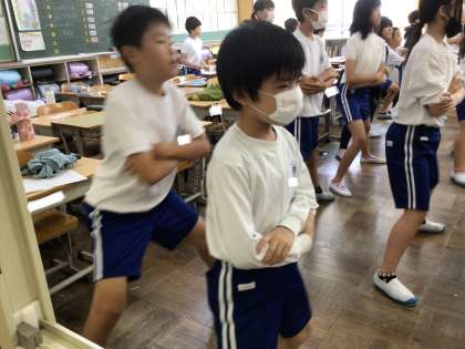 10月23日(水)の梅坪小(9)ソーラン節 特訓中 5年生