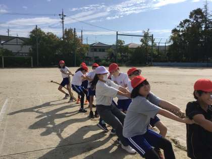 10月24日(木)の梅坪小(5)5年生 綱引きの練習