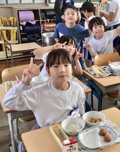 10月25日(金)の梅坪小(8)2年生の給食風景