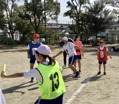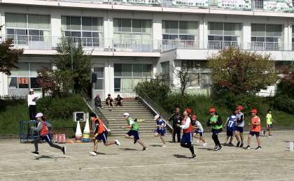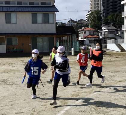 10月25日(金)の梅坪小(14)6年生 クラス対抗リレー