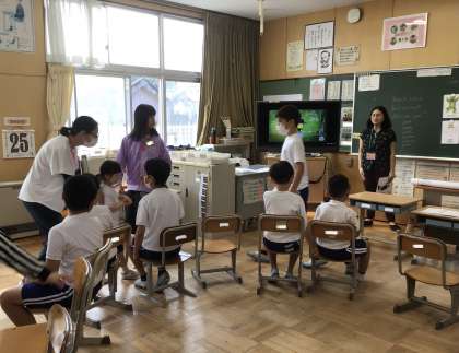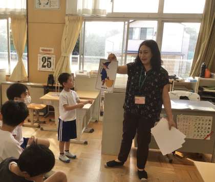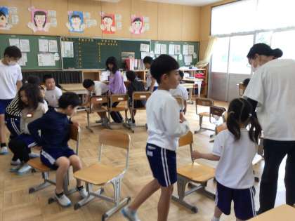 10月25日(金)の梅坪小(17)外国語活動 特別支援学級 公開日 2024/10/25 更新日 2024/10/26 各学年から 特別支援学級の外国語活動です。 今日は、ALTのアイリーン先生の授業でした。 もうすぐ10月31日。 今日のめあては、Let's enjoy Halloween! です。 ハロウィンにまつわるワードを紹介しながら、フルーツバスケットで楽しみました。