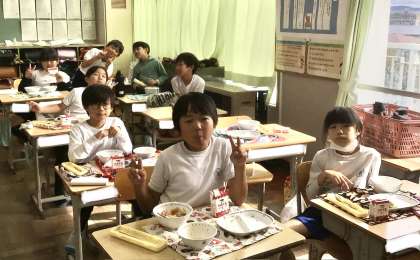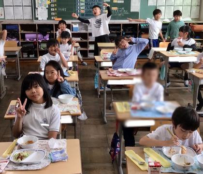 10月28日(月)の梅坪小(10)3年生の給食風景