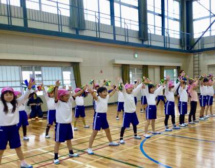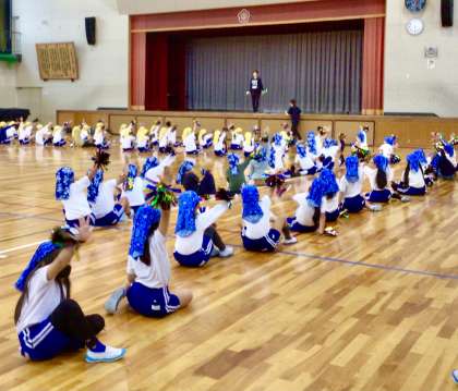 10月29日( 火)の梅坪小(3)低学年練習 夢の舞台でレッツダンス♪ 公開日 2024/10/29 更新日 2024/10/29 各学年から スポフェス、低学年練習「夢の舞台でレッツダンス♪」 外は雨。 体育館で行いました。