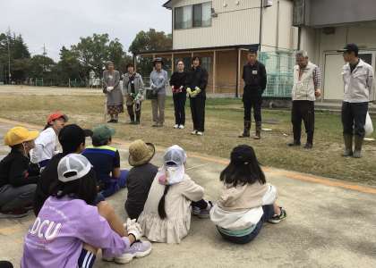 10月29日( 火)の梅坪小(18)サツマイモ掘りとリースの土台づくり