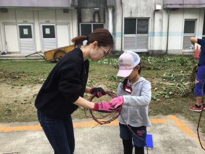 特別支援学級のみんなで、サツマイモ掘りとリースの土台づくりを行いました。