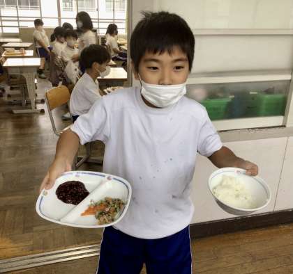 10月29日( 火)の梅坪小(6)4年生の給食風景