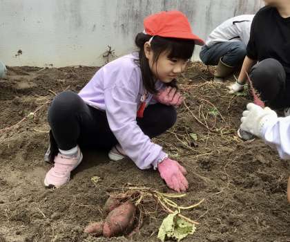 10月29日( 火)の梅坪小(21)サツマイモ掘りとリースの土台づくり