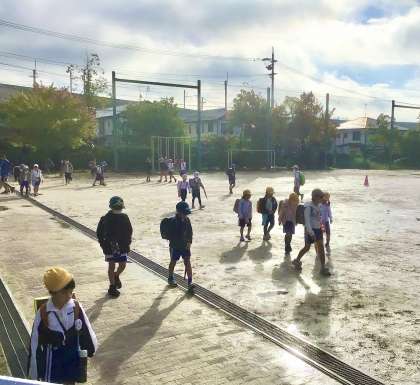 10月30日(水)の梅坪小(1)登校風景