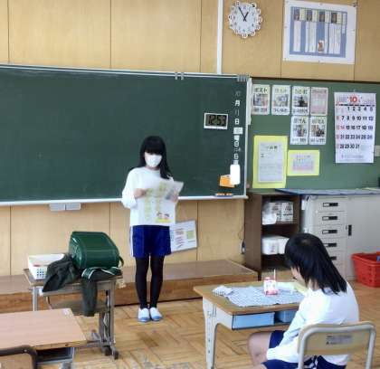 給食の時に生活委員の6年生が、各クラスに説明に来てくれました。