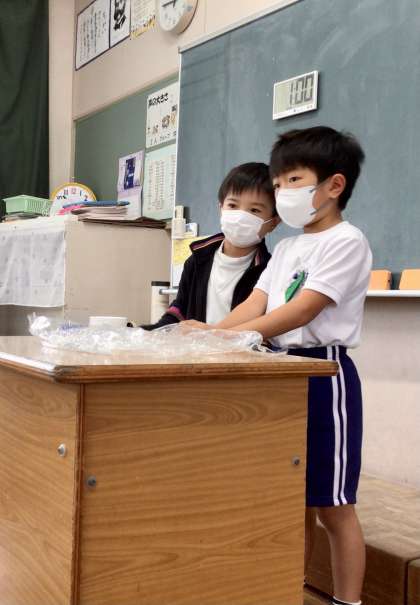 11月1日(金)の梅坪小(4)1年生の給食風景