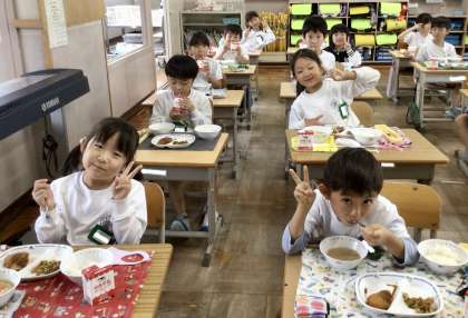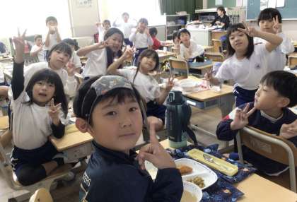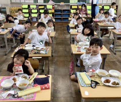 11月1日(金)の梅坪小(6)1年生の給食風景
