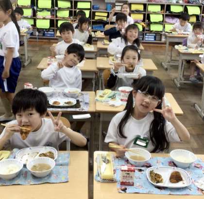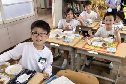 11月1日(金)の梅坪小(8)1年生の給食風景
