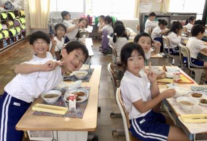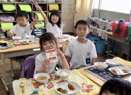 11月1日(金)の梅坪小(9)1年生の給食風景