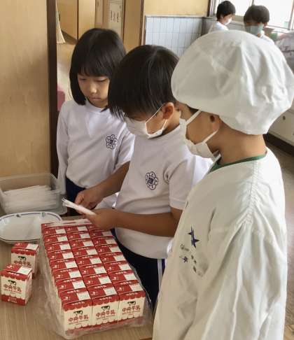 本日は、梅小2回目のスポフェスを控え、練習でも1年生をリードしている2年生の給食風景です!