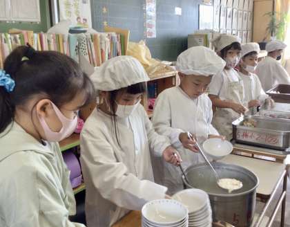 11月5日(火)の梅坪小(6)2年生の給食風景