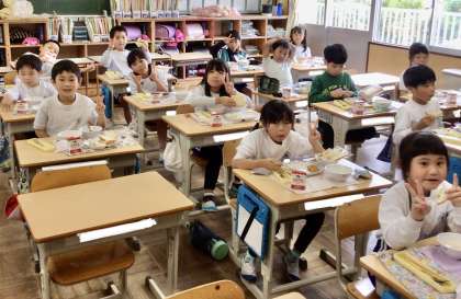 11月5日(火)の梅坪小(7)2年生の給食風景