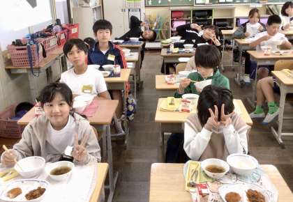 11月8日(金)の梅坪小(8)5年生の給食風景