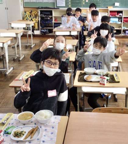 11月11日(月)の梅坪小(9)6年生の給食風景