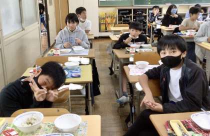 11月11日(月)の梅坪小(10)6年生の給食風景