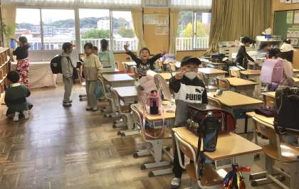 今朝も子どもたちは元気に登校しております。