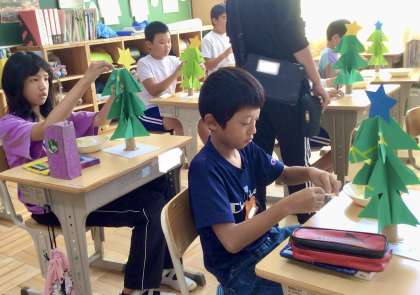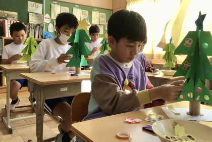 それでも、みんなそれぞれ、クリスマスツリーのイメージを膨らませてオリジナル作品の完成を目指しました!楽しみです。