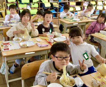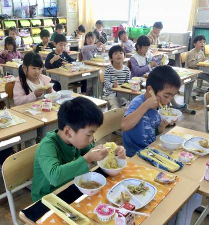 11月12日(火)の梅坪小(7)1年生の給食風景