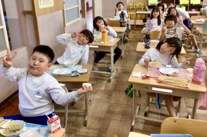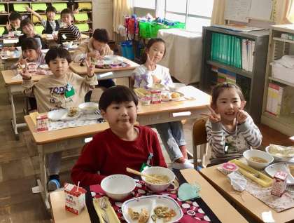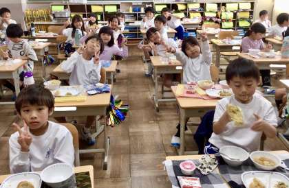 11月12日(火)の梅坪小(8)1年生の給食風景