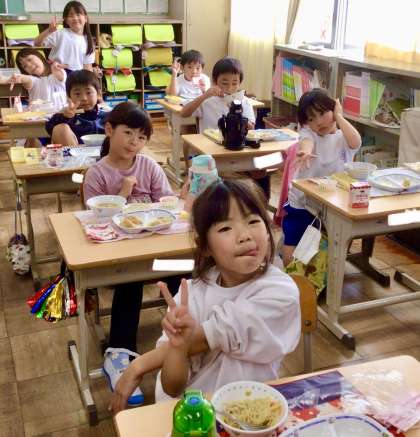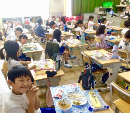 11月12日(火)の梅坪小(9)1年生の給食風景