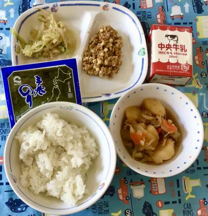 11月13日(水)の梅坪小(3)チーズなっとう巻き