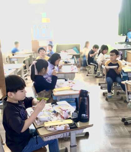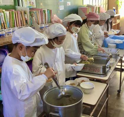 11月13日(水)の梅坪小(4)2年生の給食風景