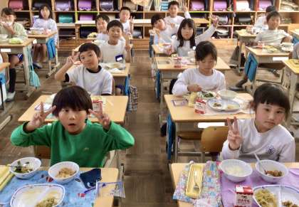 11月13日(水)の梅坪小(8)2年生の給食風景