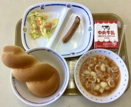 11月14日(木)の梅坪小(5)ツイストパンにミネストローネ