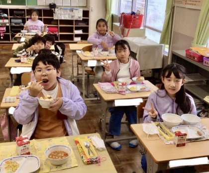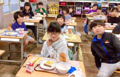 11月14日(木)の梅坪小(6)3年生の給食風景