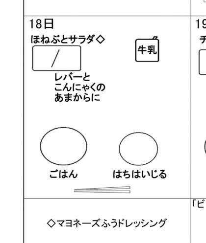 11月18日(月)の梅坪小(3)今日の給食 公開日 2024/11/18 更新日 2024/11/18 お知らせ 今日のメニューは、レバーとこんにゃくのあまからに、はちはいじる、ほねぶとサラダです。 はちはいじる(八杯汁)とは、三河地方の郷土料理です。 その由来は、八杯おかわりするくらいおいしいと言われ、地元でとれる野菜がたくさん入っています。 よくかんでいただきましょう!