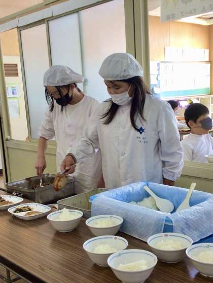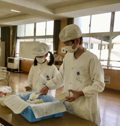11月19日(火)の梅坪小(6)5年生の給食風景